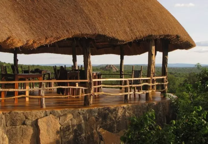 Die Aussicht vom Restaurant ist einfach atemberaubend. Ein Wasserloch in der Nähe zieht bei Sonnenuntergang häufig durstige Tiere an, sodass das Abendessen oft mit Aussicht auf Zebras und Impalas eingenommen werden kann.