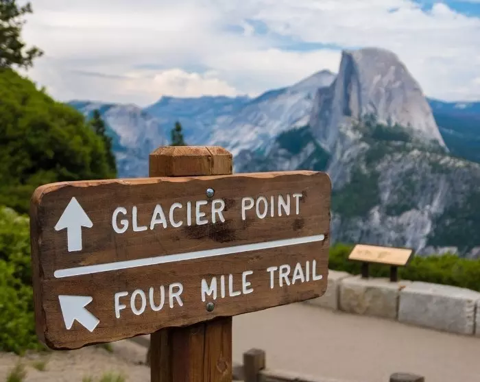 In den Sommermonaten, wenn der Schnee geschmolzen ist, ist Glacier Point einer der Aussichtspunkte, die Sie sich nicht entgehen lassen sollten. Sie können entweder mit dem Auto nach oben fahren oder eine Busfahrt zum Glacier Point buchen (kann gegen Gebühr direkt im Park gebucht werden, nach dem Motto „Wer zuerst kommt, mahlt zuerst“). Wenn Sie eine Wanderung vom Aussichtspunkt aus unternehmen möchten, können Sie auch ein Busticket bis zum Aussichtspunkt buchen und über den Four Mile Trail nach unten wandern. Vom Glacier Point aus können Sie auch einen außergewöhnlichen Sonnenuntergang erleben – nämlich den Moment, in dem die Sonne den großen Berg Half Dome in orangefarbenes Licht taucht.
