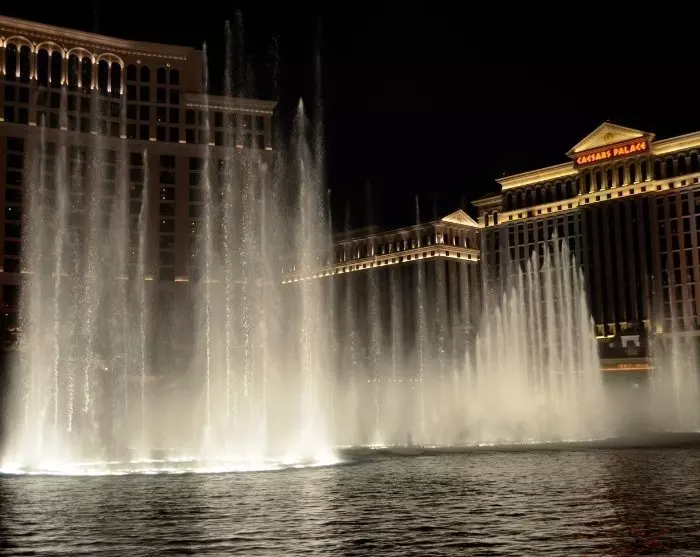 Bei der Ankunft in Ihrem Themenhotel ist es schwer, beim Anblick der vielen blinkenden Maschinen nicht zu lächeln, wo Dutzende von hoffnungsvollen Spielern den „Arm“ ziehen. Checken Sie im Hotel ein, nehmen Sie ein Bad im Pool und genießen Sie den Abend in einem der vielen Restaurants der Stadt. Bereits heute Abend können Sie am berühmten Brunnen vor dem Hotel Bellagio Halt machen, das seit seiner Eröffnung im Jahr 1998 beeindruckende Wassershows zu den Klängen von klassischer Musik für Passanten bietet.