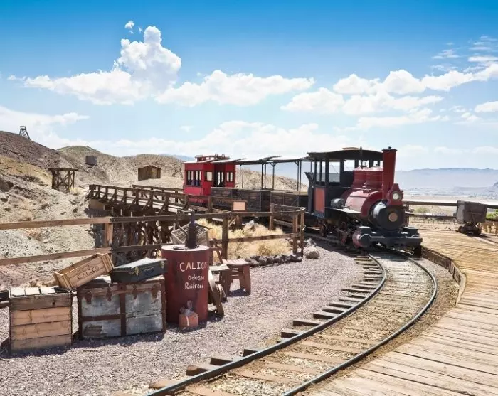 In der Nähe befindet sich auch die ehemalige Silberbergbaustadt Calico, wo 1881 die größte Entdeckung von Silber in der Geschichte Kaliforniens gemacht wurde. Inzwischen ist die Stadt verlassen und ähnelt einer Geisterstadt. Besuchen Sie die Silbermine und spüren Sie die rauen Bedingungen, unter denen die Menschen arbeiteten, oder schlendern Sie an den gut erhaltenen Häusern vorbei.