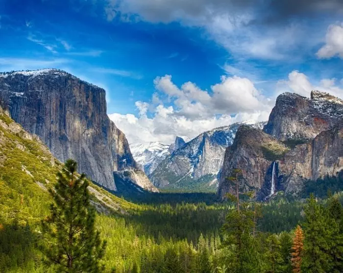 Sie sollten auch in Betracht ziehen, mit dem Auto zu einem der schönsten Aussichtspunkte des Parks zu fahren, dem Tunnel View. Von hier aus haben Sie einen atemberaubenden Blick auf das Yosemite Valley, den Bridalveil Fall und die berühmten Berge El Capitan und Half Dome, der oben bereits erwähnt wurde.