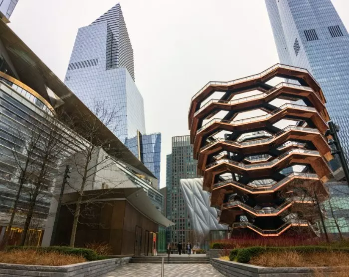 Die Tour endet in Hudson Yards, einem neueren und sehr beeindruckenden Viertel von New York City. Hier sehen Sie das berühmte Vessel, ein beeindruckendes Gebäude, das aus einer Serie von Treppen besteht und einen atemberaubenden Blick auf die Stadt bietet. In Hudson Yards finden Sie auch zahlreiche Geschäfte, Restaurants und lokale Kunsthandwerker.