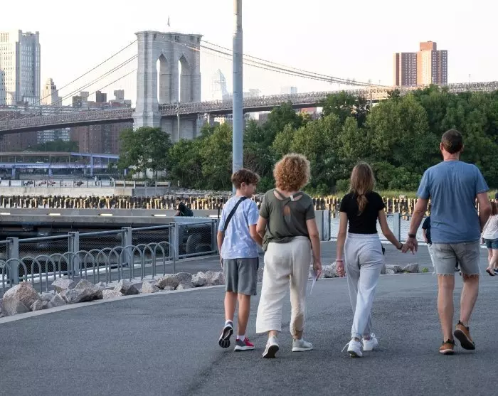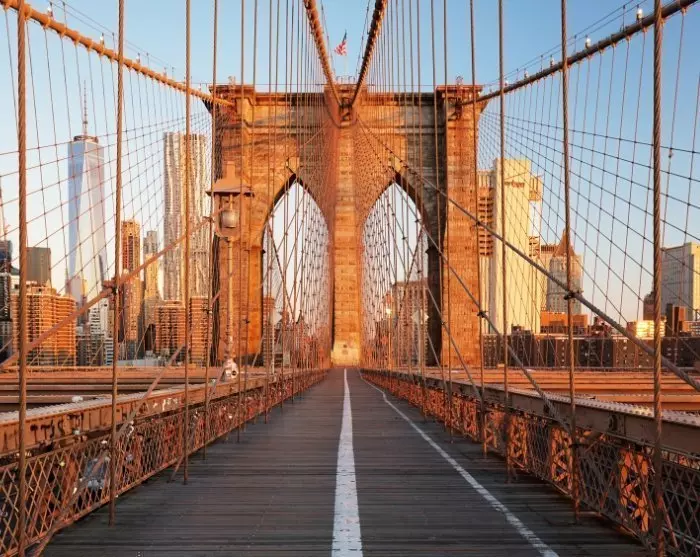 Ab dem Startpunkt werden Sie und Ihre Gruppe von Ihrem Guide über die Brooklyn Bridge begleitet, während Ihr Guide über die faszinierende Geschichte der Brücke erzählt und Sie den fantastischen Blick auf Manhattan als Kulisse genießen können. Auf der anderen Seite der Brücke erreichen Sie das DUMBO-Viertel, wo Sie die Uferpromenade erleben und die Brooklyn Bridge aus einem neuen Blickwinkel sehen können. Das DUMBO-Viertel ist bekannt für seine Promenade am East River sowie für seine charmante Atmosphäre mit vielen Designern, Künstlern, speziellen Läden und großartigen Restaurants. Zum Schluss erreichen Sie den Brooklyn Bridge Park, wo Sie die Gegend auf eigene Faust erkunden können.