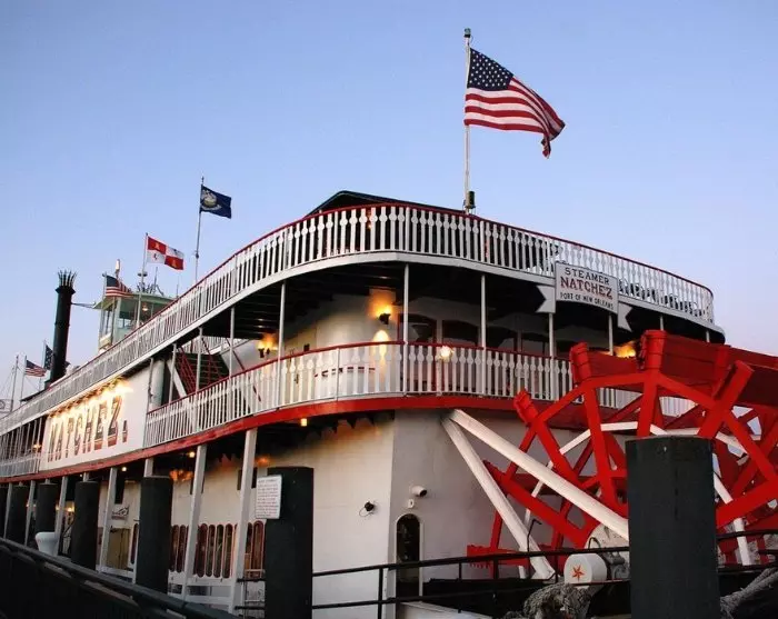 Das Boot fährt vom historischen French Quarter ab und Sie müssen rechtzeitig am Treffpunkt bereit stehen. Die eigentliche Kreuzfahrt beginnt nach ca. einer Stunde. Die Gäste des Bootes speisen zu unterschiedlichen Zeiten in zwei Durchgängen: um ca. 18:00 oder 19:45 Uhr. Während Sie Ihr köstliches Abendessen genießen, werden Sie mit Live-Jazz von der Grammy-nominierten Band „Dukes of Dixieland“ unterhalten. Wenn Sie nicht am Tisch sitzen, können Sie das Schiff erkunden und den beeindruckendes Dampfmaschinenraum besuchen. Oder Sie genießen einfach die frische Luft und den wunderschönen Blick auf die Skyline der Stadt sowie den mächtigen Mississippi River.