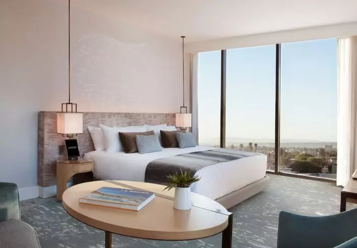 Freuen Sie sich auf unzählige Einrichtungen im Hotel, die Ihren Aufenthalt garantiert unvergesslich machen werden. Genießen Sie beispielsweise ein erfrischendes Bad im herrlichen Pool auf der Dachterrasse, von wo aus Sie eine atemberaubende Aussicht auf die belebte Stadt und das ikonische Hollywood-Schild haben. Zudem verfügt das Dream Hollywood über ein gut ausgestattetes Fitnesscenter. Trainieren Sie dort eigenständig oder buchen Sie eine Personal Trainerin oder einen Personal Trainer, die Sie bei Ihrem Training begleiten. Im erlesenen Wellnessbereich des Hotels werden verschiedene Anwendungen und Massagen geboten. Hier können Sie sich entspannen und neue Energie tanken. Wenn Sie gerne ruhiger unterwegs sind, können Sie auch an einer Zen-Yoga-Stunde teilnehmen, die an einigen Wochentagen auf der Dachterrasse des Hotels stattfindet.