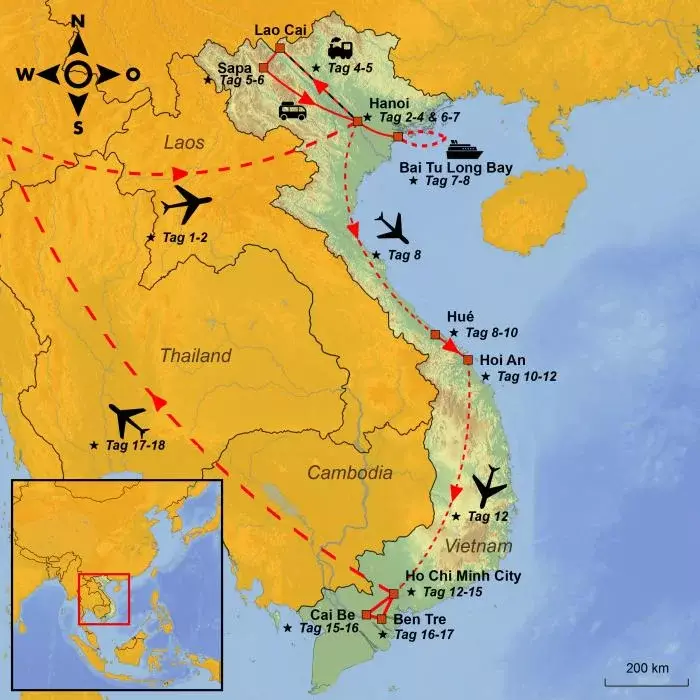 Freuen Sie sich auf eine märchenhafte Rundreise durch Vietnam – vom bergigen Sapa und der lebhaften Hauptstadt Hanoi bis zu Kaiserstädten, in reizvolle Küstenstädte, ins üppige Mekong-Delta und in die pulsierende Hauptstadt Ho-Chi-Minh-Stadt im Süden.