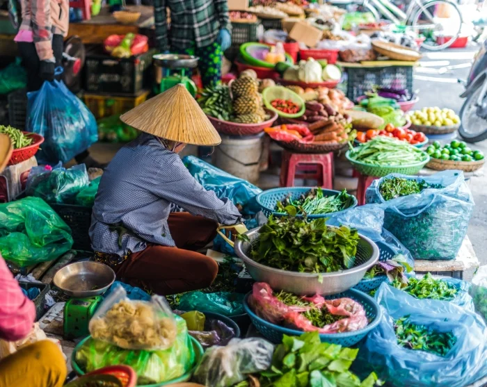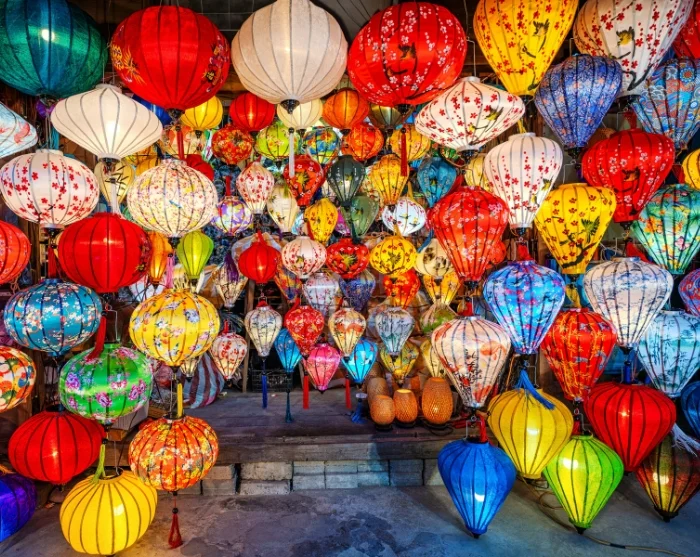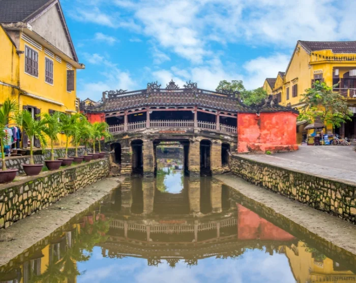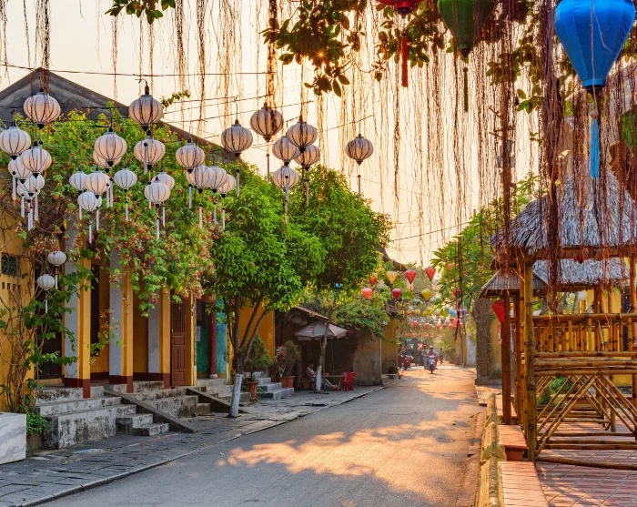 Jenseits des Flusses erwartet Sie ein Labyrinth aus charmanten, schmalen Gassen mit einer farbenfrohen Mischung aus japanischen Holzhäusern, chinesischen Versammlungshallen, französischen Kolonialbauten und charakteristischen Handelshäusern. Bunte Laternenreihen überspannen die Straßen und verleihen der Stadt – besonders bei Einbruch der Dunkelheit – eine magische Atmosphäre. Läden, Streetfood-Stände, Cafés und kleine Restaurants säumen die Straßen wie Perlen auf einer Schnur und laden dazu ein, gemütlich zu bummeln und den Ort in Ihrem eigenen Tempo zu entdecken.
