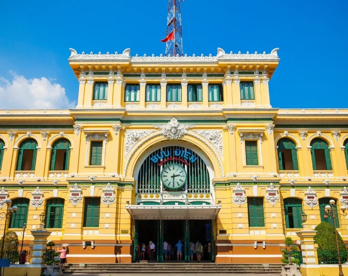 Anschließend besichtigen Sie das Alte Postamt, entworfen vom weltberühmten französischen Ingenieur Gustave Eiffel. Mit seinen anmutigen Bögen, der eleganten Eisenkonstruktion und seiner historischen Atmosphäre ist es ein eindrucksvolles Zeugnis des französischen Einflusses auf Ho-Chi-Minh-Stadt.