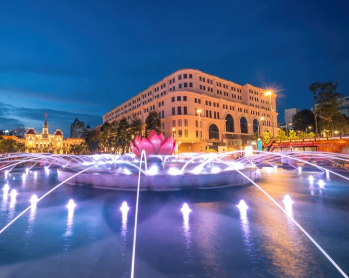 Wenn die Dämmerung einsetzt, empfiehlt sich ein gemütlicher Spaziergang entlang der Nguyen-Hue-Promenade, umgeben von Blumen, Springbrunnen und eindrucksvoller Architektur. Hier spüren Sie das einzigartige Lebensgefühl der Stadt – zwischen Straßenkünstlern, Tänzern und Familien entsteht eine lebendige, herzliche Atmosphäre, die ihren Höhepunkt rund um das festlich beleuchtete Rathaus findet.