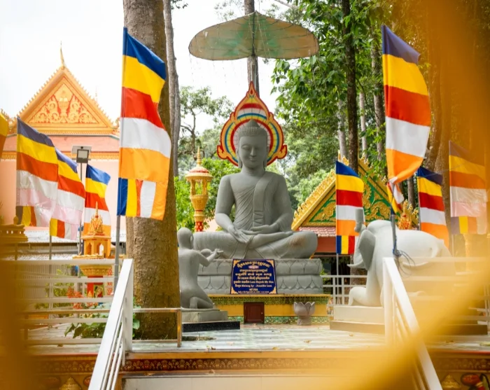 Sie werden in Ihrem Hotel in Cai Be abgeholt und fahren zur ruhigen Ba-Om-Teichanlage in die charmante Stadt Tra Vinh, die etwas mehr als zwei Stunden entfernt liegt. Nach einem gemütlichen Spaziergang um den Teich bringt Sie ein traditionelles Tuk-Tuk zur Ang-Pagode und zum Khmer-Museum, wo Sie einen spannenden Einblick in das kulturelle und spirituelle Erbe der Region erhalten.