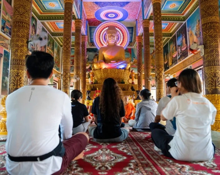 Heute erhalten Sie einen einzigartigen Einblick in das Alltagsleben und die lebendigen Handwerkstraditionen der kleinen ländlichen Gemeinden rund um Tra Vinh. Tra Vinh ist eine friedliche und authentische Provinzstadt im südlichen Mekong-Delta und die Heimat einer großen Khmer-Bevölkerung. Ihre farbenfrohen Pagoden, das gemächliche Tempo und die spirituelle Atmosphäre verleihen der Stadt ihren besonderen Charakter und bilden die Kulisse für die heutigen Erlebnisse.
