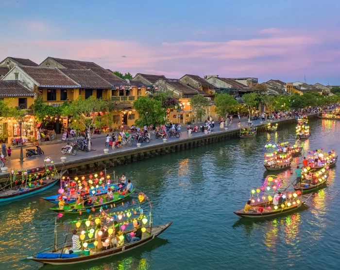 Die Reise beginnt in Zentralvietnam, in der charmanten Stadt Hoi An, wo farbenfrohe Laternen, historische Handelshäuser und enge Gassen die Kulisse für Ihre ersten Eindrücke bilden. Hier haben Sie ausreichend Zeit, die zum UNESCO-Welterbe zählende Altstadt zu erkunden, sich am Strand zu entspannen oder an einem der lokalen Ausflüge in der Umgebung teilzunehmen.