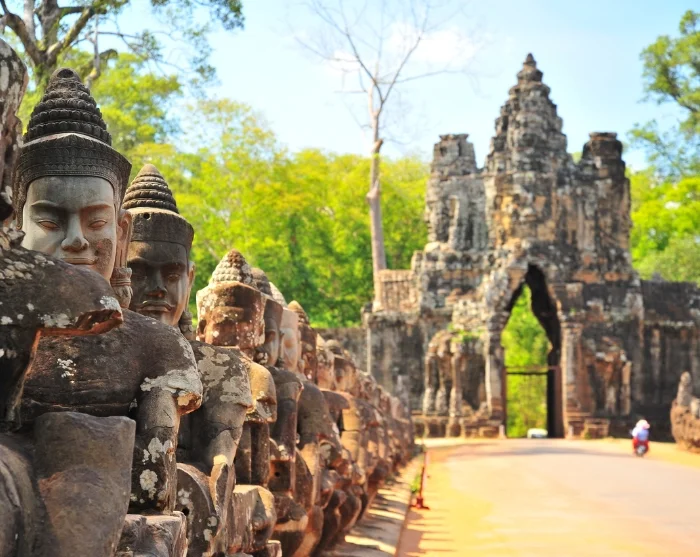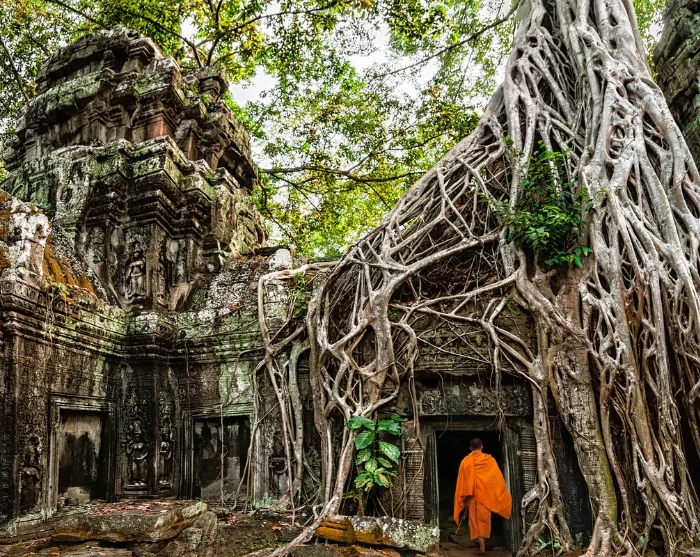 Auf dieser Verlängerung erwartet Sie die außergewöhnliche Tempelanlage von Angkor, die auf der UNESCO Welterbeliste steht. Hier erleben Sie einige der berühmtesten Tempel der Region. Sie besuchen Angkor Thom mit den vielen lächelnden Gesichtern des Bayon, den Tempel Phimeanakas und die Terrasse der Elefanten. Außerdem führt Sie die Reise nach Ta Prohm, wo sich riesige Bäume und Wurzeln durch die uralten Ruinen geflochten haben und eine fast unwirkliche Szenerie schaffen. Ihr Tag endet am Angkor Wat, dem Nationalsymbol Kambodschas und dem größten sakralen Bauwerk der Welt; anschließend genießen Sie den Sonnenuntergang vom Phnom Bakheng.