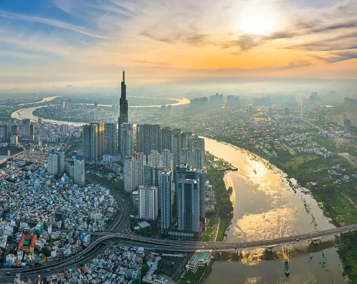 Nach Sonnenuntergang ist der perfekte Moment gekommen, um den Tag ausklingen zu lassen – mit einem Blick auf das funkelnde Lichtermeer von einem der Wolkenkratzer der Stadt, etwa vom Bitexco Financial Tower oder Landmark 81.
