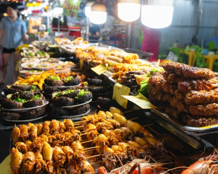 Abends pulsiert das Leben rund um die Pub Street: Restaurants, Bars und Street-Food-Stände, an denen Sie lokale Spezialitäten und die entspannte Atmosphäre genießen können.