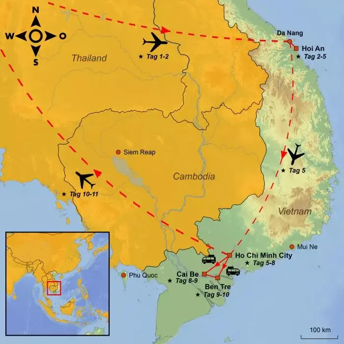 Die Reise kann mit einem erholsamen Badeurlaub in Mui Ne oder auf der Insel Phu Quoc verlängert werden – oder mit einem Aufenthalt in Siem Reap, einschließlich eines Besuchs von Angkor Wat.