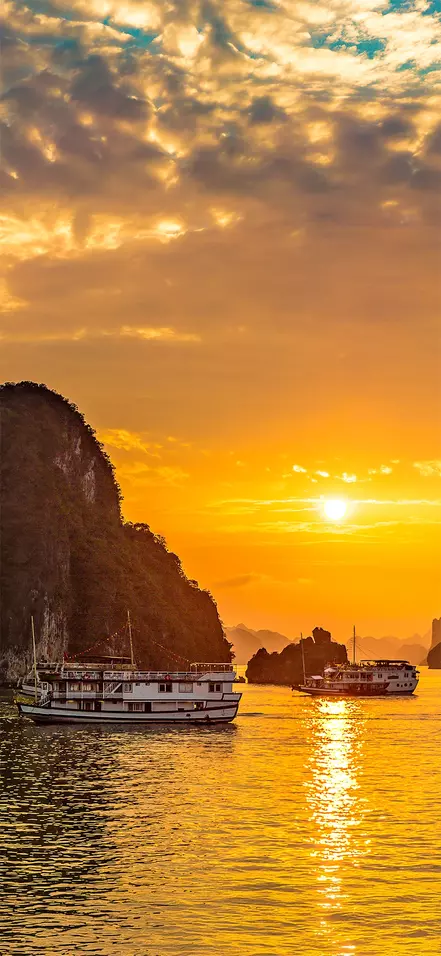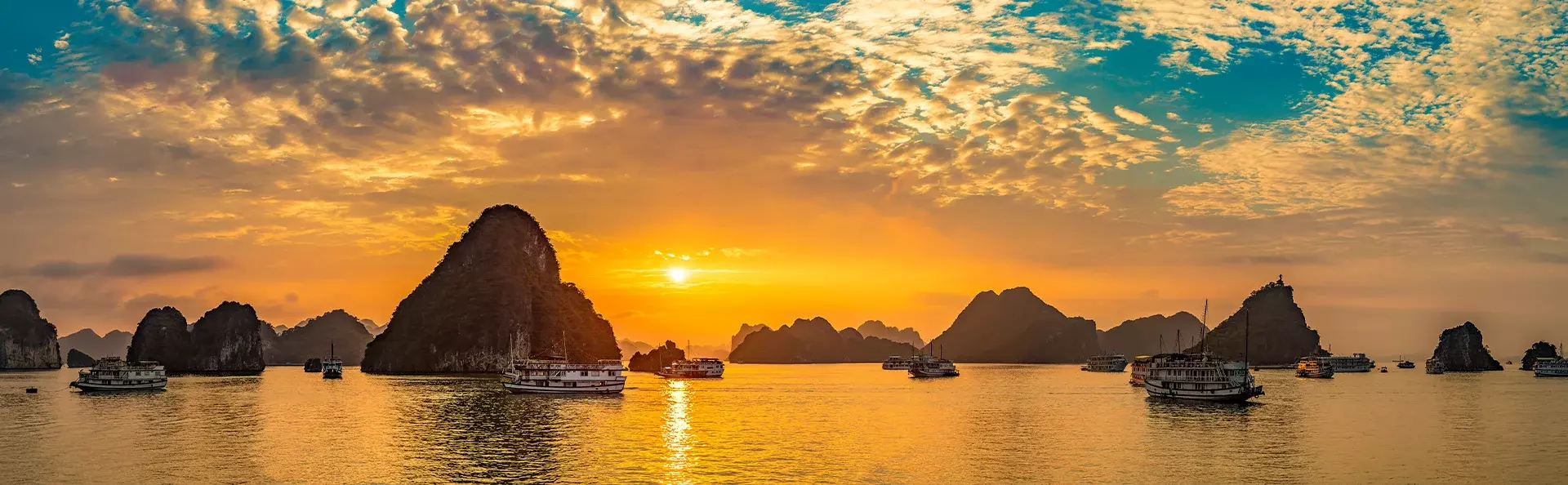 Die Halong-Bucht zählt zu Vietnams beeindruckendsten Naturwundern. Hunderte grüne Kalksteinfelsen ragen steil aus dem Meer, dessen Farbe im Jahresverlauf von tiefem Blau zu intensivem Jadegrün wechselt. Die größte Insel, Cat Ba, beherbergt mehrere Dörfer, während einige der kleinen Inseln von winzigen Fischergemeinden bewohnt sind. Für Reisende ist die Halong-Bucht in erster Linie ein Naturwunder von Weltrang. Für die Vietnamesen aber ist sie ebenso ein Ort voller Mythen, Drachenlegenden und sagenhafter Geschichten. Mit einer Fläche von rund 1.500 km² ist die Bucht seit 1994 Teil der UNESCO Welterbeliste.