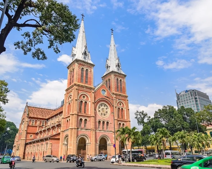Direkt gegenüber dem Zentralpostamt steht die ikonische Notre-Dame-Kathedrale, erbaut zwischen 1863 und 1880. Mit ihren charakteristischen roten Ziegeln und den himmelstrebenden Türmen ist sie ein imposantes Relikt der französischen Kolonialzeit.