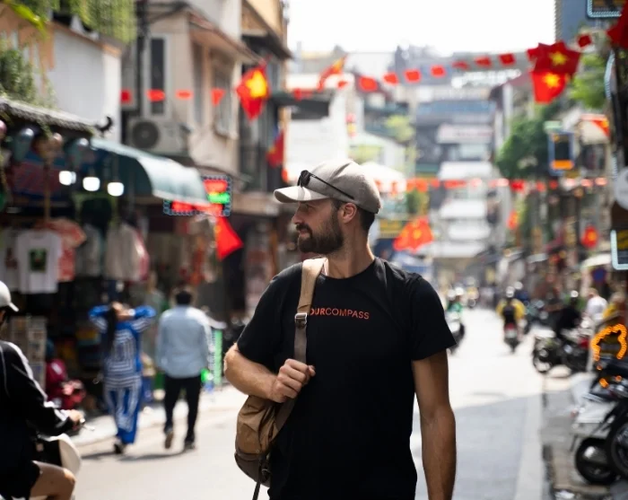 Sie landen am internationalen Flughafen Noi Bai in Hanoi, passieren die Einreisekontrolle und nehmen Ihr Gepäck entgegen. Ihr Guide wartet außerhalb der Ankunftshalle, hinter den Ausgangstüren. In TourCompass-Uniform und mit einem TourCompass-Schild ist er leicht zu erkennen.