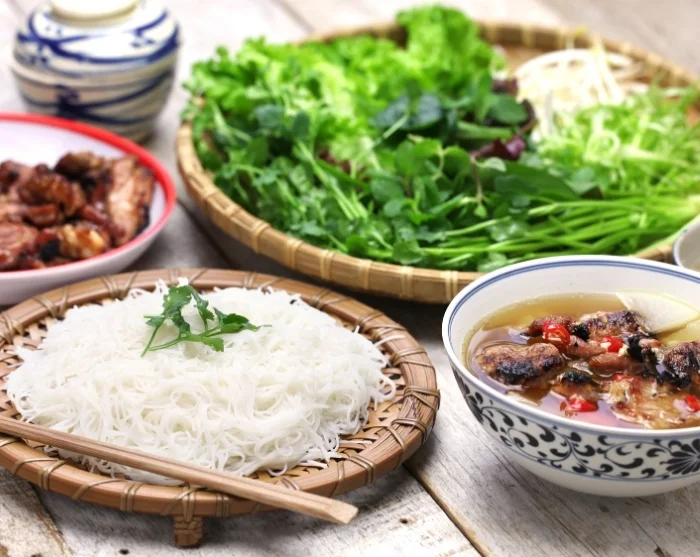 Zum Mittagessen sollten Sie Hanois berühmtes Streetfood probieren. Kosten Sie eine dampfende Schüssel Pho, atmen Sie den Duft von gegrilltem Bun Cha ein, oder holen Sie sich ein knuspriges Banh Mi zum Mitnehmen.