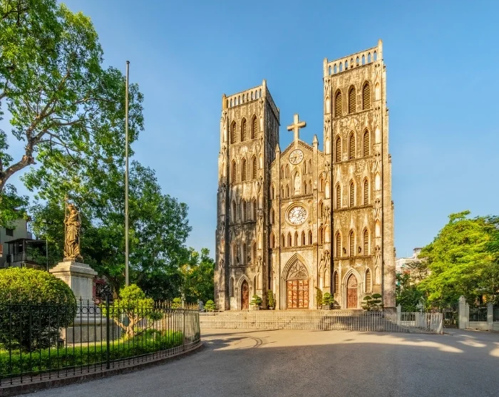 Gehen Sie anschließend weiter zum schönen Hoàn-Kiếm-See, wo enge Gassen und französische Kolonialbauten kleine Läden, farbenfrohe Kunstgalerien und gemütliche Cafés verbergen. Machen Sie es sich mit einem vietnamesischen Kaffee bequem und beobachten Sie das Treiben, während Einheimische und Besucher einander begegnen. Nicht weit von hier erhebt sich die markante Sankt-Joseph-Kathedrale; mit ihrer gotischen Fassade und dem lebhaften Platz davor ist sie ein beliebter Treffpunkt.