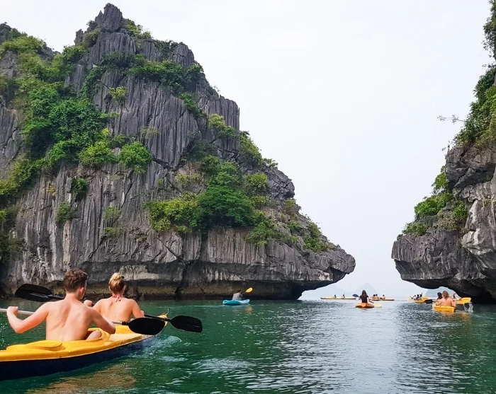 Am Vormittag fahren Sie in das Tra-Bau-Gebiet zum Kajakfahren und Schwimmen. Dieser landschaftlich reizvolle Ort ist für seine Schönheit bekannt und diente als Drehort für den Film Kong: Skull Island.