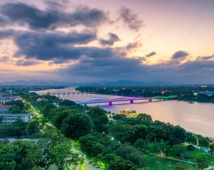 Hué bietet abends viele einladende Möglichkeiten. Spazieren Sie zum Beispiel am Parfümfluss entlang: Die Promenade ist stimmungsvoll beleuchtet, und Sie können beobachten, wie kleine Boote im Dunkeln vorbeigleiten. Zudem finden Sie kleine Cafés und Streetfood-Stände, die lokale Spezialitäten servieren, etwa bún bò Huế, eine pikante Nudelsuppe aus der Region.