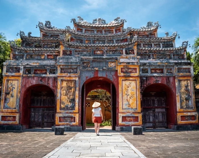 Sie gehen an der Tuan-Chau-Marina von Bord, wo Ihr Guide und Fahrer bereits warten, um Sie zum Flughafen Noi Bai in Hanoi zu bringen. Von hier fliegen Sie nach Huế in Zentralvietnam – ein Flug von etwa 1 Stunde und 15 Minuten.