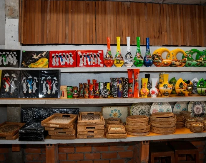 Nach einer etwa 2 1/2-stündigen Fahrt erreichen Sie die Stadt Cai Be. Dort gehen Sie an Bord eines Schiffes und legen ab zu einer Fahrt durch das üppige Mekongdelta. Sie besuchen lokale Werkstätten, in denen talentierte Kunsthandwerker Produkte aus Kokos herstellen. Anschließend fahren Sie in einem kleinen Sampan – einem traditionellen, geruderten Holzboot – durch die schmalen, mäandernden Kanäle des Mekong-Deltas.