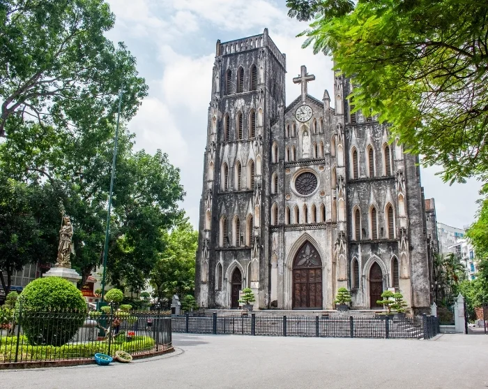 Gegenüber der Alten Post liegt die berühmte, im den Jahren 1863 bis 1880 gebaute Kathedrale Notre Dame. Mit ihren charakteristischen roten Ziegeln und hohen Turmspitzen ist sie ein beeindruckendes Zeugnis der französischen Kolonialzeit.