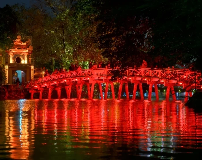 Wenn die Nacht hereinbricht, erwacht Hanoi so richtig zum Leben. Die Straßen leuchten im Schein der Garküchen, und die Luft ist erfüllt vom Duft gegrillten Fleisches, frischem Koriander und aromatischer Brühe, die durch die engen Gassen zieht. Machen Sie einen gemütlichen Spaziergang durch das Altstadtviertel und lassen Sie die Atmosphäre auf sich wirken – oder genießen Sie den Blick auf das pulsierende Nachtleben der Stadt von einer Dachterrassenbar aus.