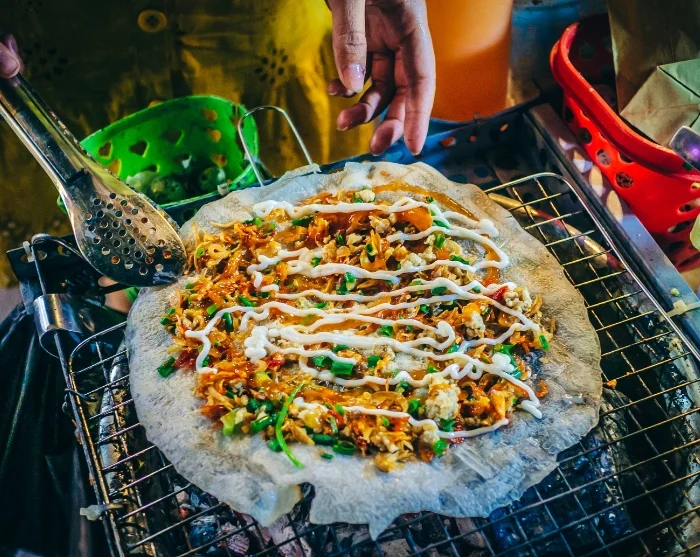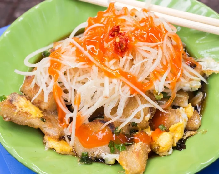 Ihr kulinarisches Abenteuer rundet eine Schale Hu tieu ab – ein Nudelgericht, das als Suppe, wie auch in einer trockenen Version erhältlich ist – und das beliebte Streetfood-Gericht Bot chien, das aus kleinen Reismehlwürfeln besteht: außen knusprig, innen weich, mit Ei und Frühlingszwiebel gebraten und mit einer süß-säuerlichen Sauce auf Sojabasis und frisch geriebener Papaya. Ein einfaches, aber sehr schmackhaftes Gericht, das viele Einheimische als späten Snack essen.