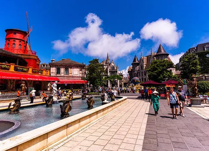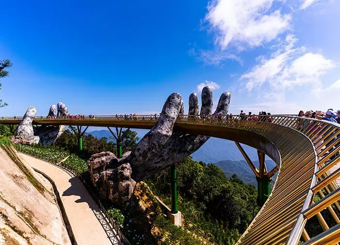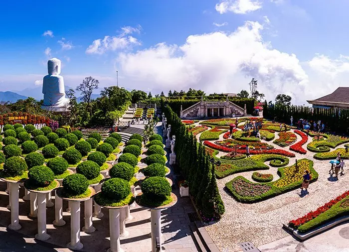 Der Guide holt Sie morgens vom Hotel ab. Nach ca. 1,5 Autostunden kommen Sie bei der Seilbahn an, die Sie innerhalb von 15 Minuten mit einer wunderschönen Fahrt auf 1.400 Meter Seehöhe bringt. Oben erwartet Sie ein beeindruckender Anblick. Plötzlich taucht die Goldene Brücke auf, die auf 2 großen aus Stein gehauenen Händen zu schweben scheint. Die Brücke wurde 2018 fertiggestellt und rasch auf der ganzen Welt für ihre spektakuläre Form mitten in diesem majestätischen Berggebiet berühmt. Sie wurde so entworfen, dass es aussieht, als ob die Hände Gottes ein Stück der Erde zu sich in den Himmel hinaufheben. Das Gebiet um die Mittelstation der Seilbahn wurde ursprünglich 1919 von der französischen Kolonialmacht angelegt, u. a. aufgrund der kühlen Temperaturen für die Aufbewahrung von Wein. Hier ist es normalerweise 10 Grad kälter als an der Küste. Sie haben Zeit, um hier in den wunderschönen bunten Blumengärten, auch genannt „Le Jardin d‘Amour“ – die Liebesgärten – spazieren zu gehen. Hier blickt außerdem ein gigantischer weißer Buddha über den Berghang auf die blühenden Hügel. Mit der Seilbahn geht es dann weiter zum Gipfel des Berges, wo die Schlosstürme Sie willkommen heißen. Sie befinden sich nun im Herzen des Parks. Eine abenteuerliche Landschaft mit verschiedenen Themen erstreckt sich nun vor Ihnen. Hier sind z. B. der Karneval in Rio, ein französisches Dorf, ein japanisches Teehaus und viele andere Dinge zu sehen. Sie können hier die meisten Attraktionen für Kinder und Erwachsene gratis nutzen. Nach einem herrlichen Mittagessen können Sie die Attraktionen selbst nutzen, in der Umgebung spazieren gehen, einige Souvenirs kaufen oder sich in einem der vielen Cafés und Restaurants bzw. in einer ruhigen Ecke des Parks wie z. B. der Linh Ung Pagode, entspannen.