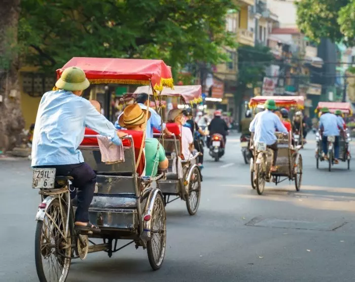 Steigen Sie in eine der traditionellen Rikschas und entdecken Sie die Sehenswürdigkeiten von Hué, während die Streetfood-Stände der Stadt leckere Spezialitäten für Sie zubereiten.