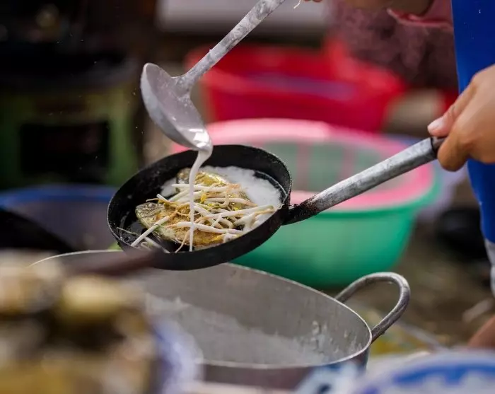 Zurück auf der Rikscha geht es durch kleine, gewundene Straßen innerhalb der Zitadellenmauern, wo das nächste Lokal auf Sie wartet. Hier können Sie dem Koch bei der Zubereitung Ihres Banh Khoai, der Hué’schen Variante eines Pfannkuchens, zusehen. Sie können ihn selbst mit frischen Kräutern belegen und so eine wunderbare kulinarische Erfahrung machen.