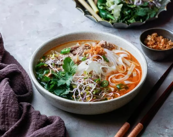Erfahrung machen.Zum Abschluss des Abends werden Sie zu einem weiteren Straßenimbiss gefahren, um die berühmte Rindfleischnudelsuppe Bún Bò Hué zu probieren. Zum Abschluss genießen Sie das Dessert Chè, eine süße Suppe, die mit köstlichen Toppings gefüllt und mit zerstoßenem Eis oder Kokosmilch serviert wird.