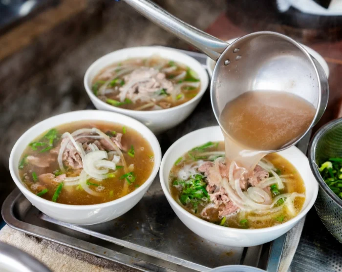 Von hier aus schlendern Sie durch enge Gassen, geleitet von Ihrem Gaumen: Probieren Sie knusprige Nem Ran (Frühlingsrollen), die weltberühmte Pho (Nudelsuppe), süße Banh Ran (gebackene Reisbällchen) und würzige Hähnchenschenkel. Auf dem Weg spazieren Sie über die Hang Ma Street und gewinnen Einblicke in das alltägliche Leben sowie die lokale Kultur. Anschließend geht es weiter zur charmanten Bamboo Corner – einer gemütlichen Straßenecke voller Bambuskunsthandwerk und quirligem Treiben der Einheimischen.
