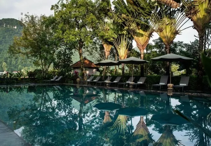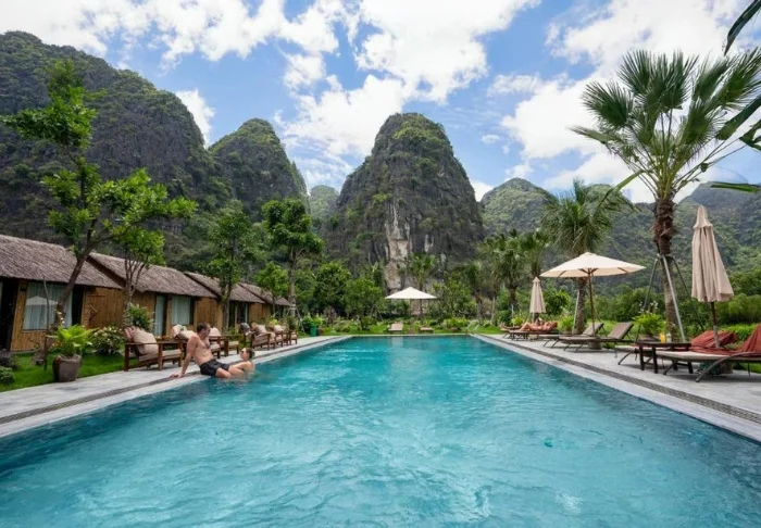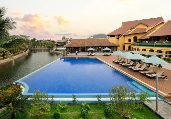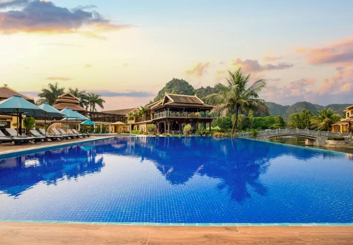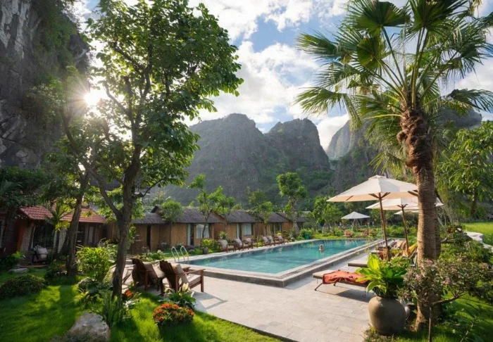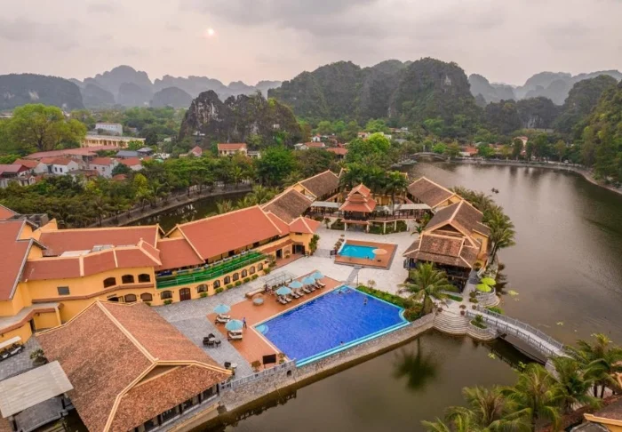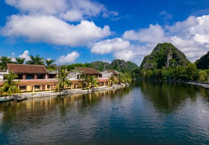 Das Emeralda Resort Tam Coc liegt am Bootsanleger von Tam Coc, wo sich die für die Region typischen Reisfelder und Kalksteinberge entfalten. Das Zentrum von Tam Coc beginnt direkt außerhalb des Resorts; Cafés, Restaurants, Bars und kleine Läden sind bequem zu Fuß erreichbar.
