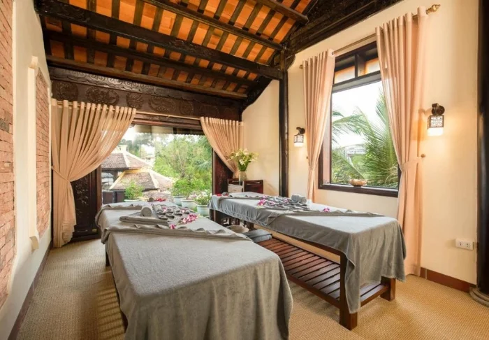 Nach einem Tag voller Entdeckungen können Sie an einem der beiden Poolbereiche des Resorts entspannen, das in einem Holzpavillon mit großen Fenstern untergebrachte Fitnesscenter nutzen oder das Spa besuchen. Das La Cochinchine Spa ist eine ruhige Oase und bietet Behandlungen, die traditionelle vietnamesische Techniken mit klassischen Massagemethoden verbinden. Außerdem können Sie Fahrräder ausleihen und die Umgebung in Ihrem eigenen Tempo erkunden.