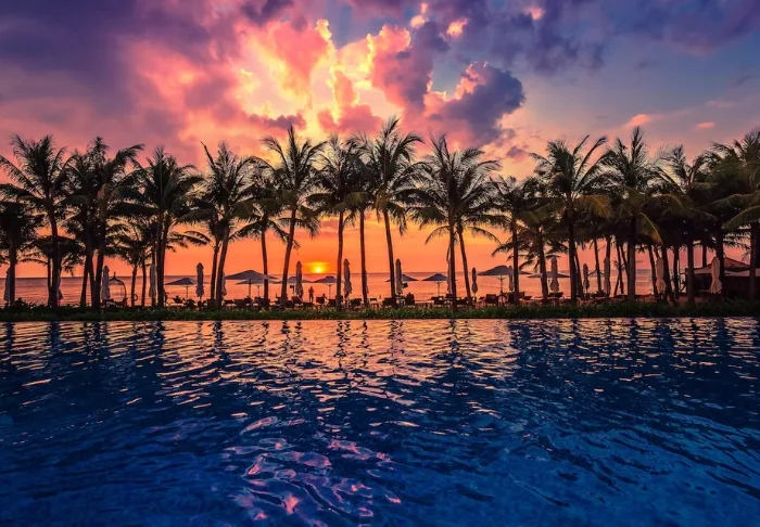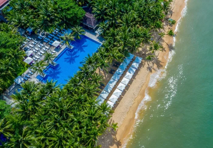 Das Resort liegt direkt am Strand in ruhiger Umgebung – ideal, um das Tempo zu drosseln und in den Urlaubsmodus zu finden. Duong Dong erreichen Sie in nur 10 Minuten mit dem Taxi, wenn Sie Lust haben, die Märkte, Cafés und das alltägliche Leben der Stadt zu erkunden.
