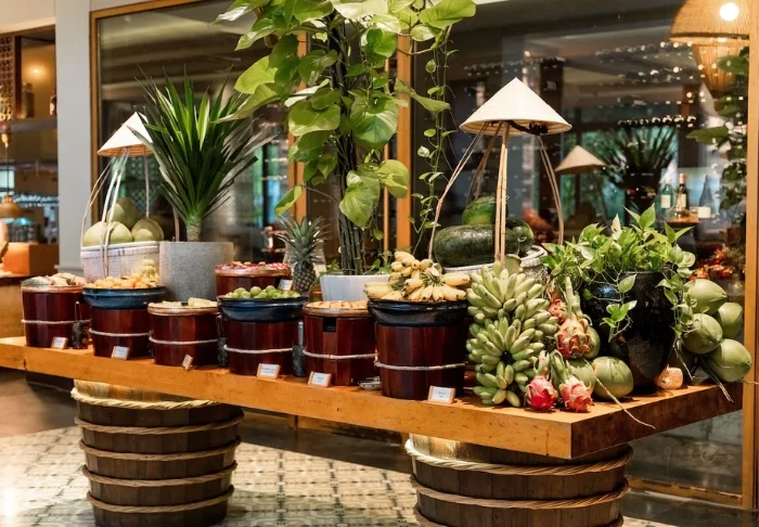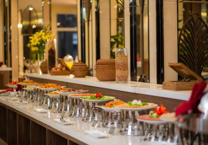 Das Restaurant des Hotels, das Mekong Medley Restaurant, bietet täglich ein Buffet zum Frühstück, Mittag- und Abendessen an. Zusätzlich können Sie aus einer à la carte Karte sowohl klassische Spezialitäten aus dem Mekong-Gebiet als auch internationale Favoriten wählen. Ein besonderes Highlight des Resorts ist die European Bakery & Dessert Corner: Hier werden täglich frisches Brot, französische Törtchen und köstliche Desserts gebacken.