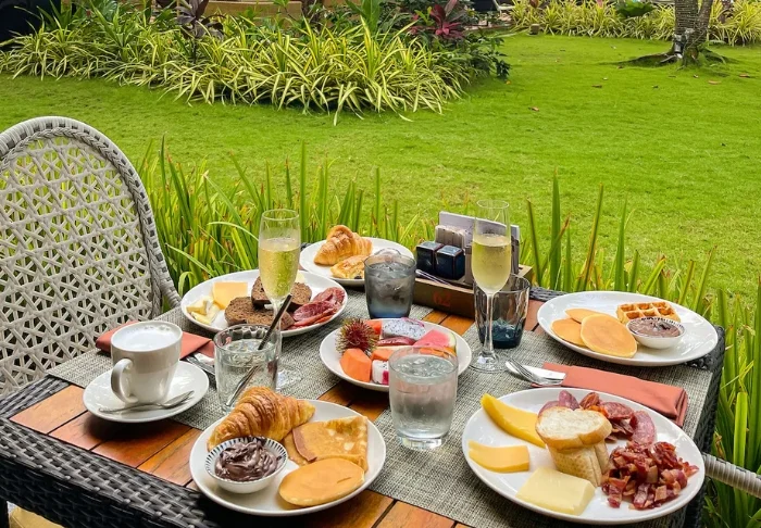 Sie können dort in und rund um die tropischen Bambushütten entspannen, die Aussicht auf die Reisfelder, den wunderschönen Garten und die herrlichen Berge genießen. Diese Aussicht können Sie auch bewundern, während Sie am Balkon oder im Outdoor-Restaurant des Resorts frühstücken.