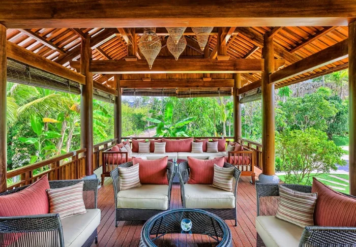 Die Garden View-Zimmer liegen in kleinen Pavillons mitten im üppigen Garten. Sie sind hell, mit Bambusmöbeln eingerichtet und verfügen über Moskitonetze über den Betten sowie farbenfrohe Kissen, die eine warme und einladende Atmosphäre schaffen. Große Fensterfronten holen den Garten direkt ins Zimmer und von der privaten Terrasse aus genießen Sie die Ruhe und den Ausblick ins Grüne.