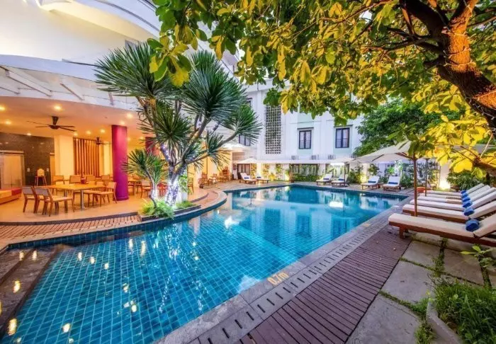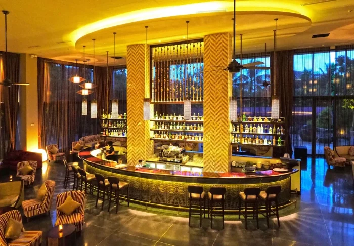 Das Hotel verfügt außerdem über mehrere Bars, jede mit ihrem eigenen Charme. Le 10° 19′ 44″ ist eine tropische Gartenbar mit entspannter Atmosphäre. Dort wird auch der Signature-Cocktail „Planteur de la Patronne“ serviert. La Manufacture d’Opium ist eine Lounge, die von der Indochina-Zeit inspiriert ist. Sie versprüht eine nostalgische Stimmung. Hier können Sie sich in Ledersesseln zurücklehnen und ein Glas Ricard, Khmer-Rum oder einen exotischen Cocktail genießen.