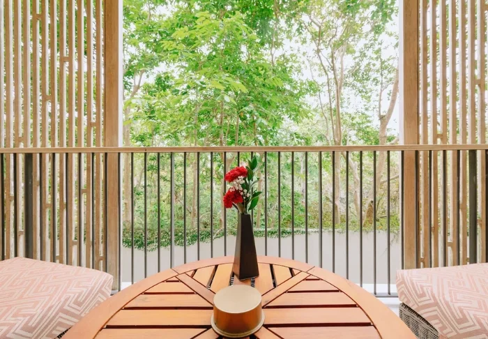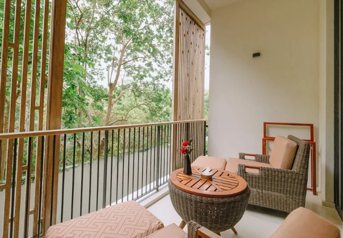 Ihr Aufenthalt beinhaltet standardmäßig ein Superior-Zimmer mit heller, beruhigender Einrichtung in erdigen Tönen, die eine warme und entspannte Atmosphäre schafft. Große Fenster lassen viel Tageslicht herein und bieten einen schönen Blick auf die Umgebung. Zur Ausstattung des Zimmers gehören Klimaanlage, TV, WLAN, ein Wasserkocher sowie ein geräumiges Badezimmer samt Dusche. Darüber hinaus genießen Sie einen kleinen Balkon mit Ausblick auf den Garten oder den Fluss – ideal, um nach einem Tag voller Erlebnisse zu entspannen.