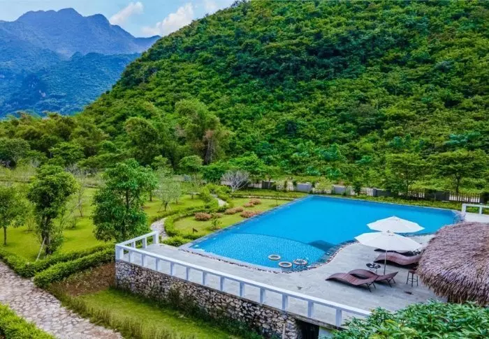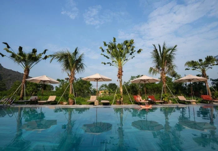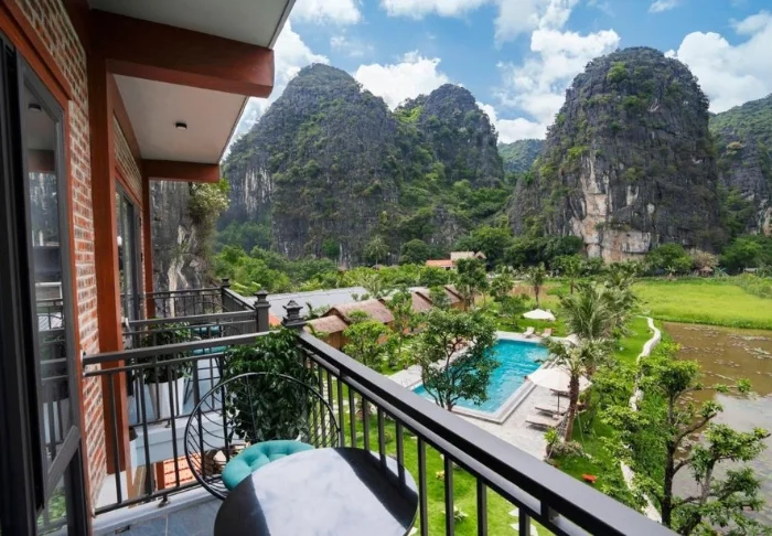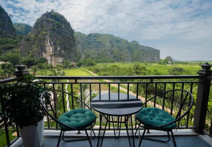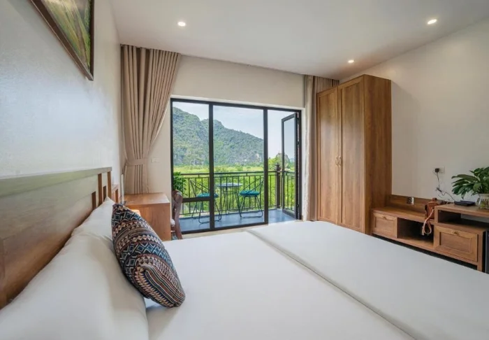 Tam Coc Peaceful Nature ist ein neues Hotel, das 2025 eröffnet wurde, mitten in der charakteristischen Landschaft von Tam Coc in Ninh Binh. Das Hotel ist umgeben von grünen Feldern und markanten Kalksteinbergen, die dramatisch aus der Landschaft emporragen. Sie wohnen ruhig und etwas abseits, sind jedoch nah am lebhaften Treiben von Tam Coc; das Zentrum erreichen Sie in rund 12 Minuten zu Fuß.