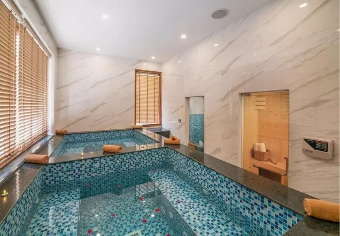 Das Herzstück des Hotels sind seine drei Swimmingpools, von denen einer direkt am Strand liegt. Rund um die Pools laden Palmen und Liegen dazu ein, in der Sonne oder im Schatten zu entspannen. Wenn Ihnen der Sinn nach etwas mehr Aktivität steht, können Sie im Pavillon am Strand Yoga üben oder sich im Spa bei Massagen verwöhnen lassen.
