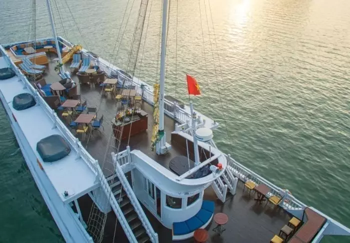 Das Segelerlebnis in der Ha-Long-Bucht erreicht mit Indochina Sails ein neues Niveau. An Bord dieses eleganten Holzschiffs mit nur 23 Kabinen spüren Sie sofort eine besonders exklusive Atmosphäre, in der Service, Details und Ambiente harmonisch zusammenwirken. Das Schiff zählt seit Jahrzehnten zu den renommiertesten der Bucht und ist für seinen hohen Standard bekannt.