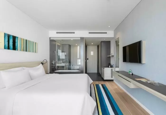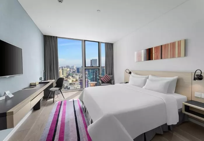 Auch wenn Sie sich im pulsierenden Stadtzentrum befinden, schafft der urbane Stil des Hotels mit seinen klaren Linien und hellen Farbtönen eine ruhige Atmosphäre und ist daher ein geeigneter Rückzugsort nach einem ereignisreichen Tag unterwegs.