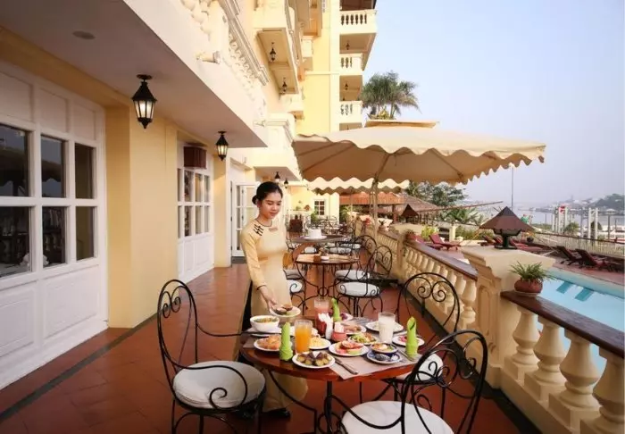 Das einzigartige Hotel wurde im ästhetisch inspirierten Kolonialstil errichtet. Sobald Sie die Lobby betreten, haben Sie das Gefühl, ins alte Indochina zu reisen. Der Stil ist romantisch und charmant, mit einem modernen Touch. Einheimische Künstler haben 250 einzigartige Ölgemälde angefertigt, welche die hellen Wände überall im Hotel zieren.